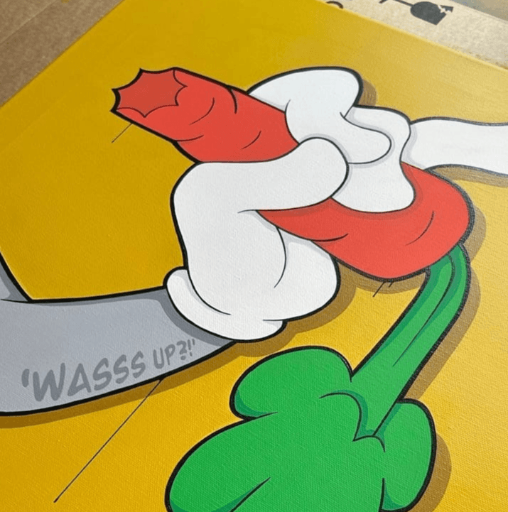 The paintings focus on cartoon characters’ hands, familiar yet different.